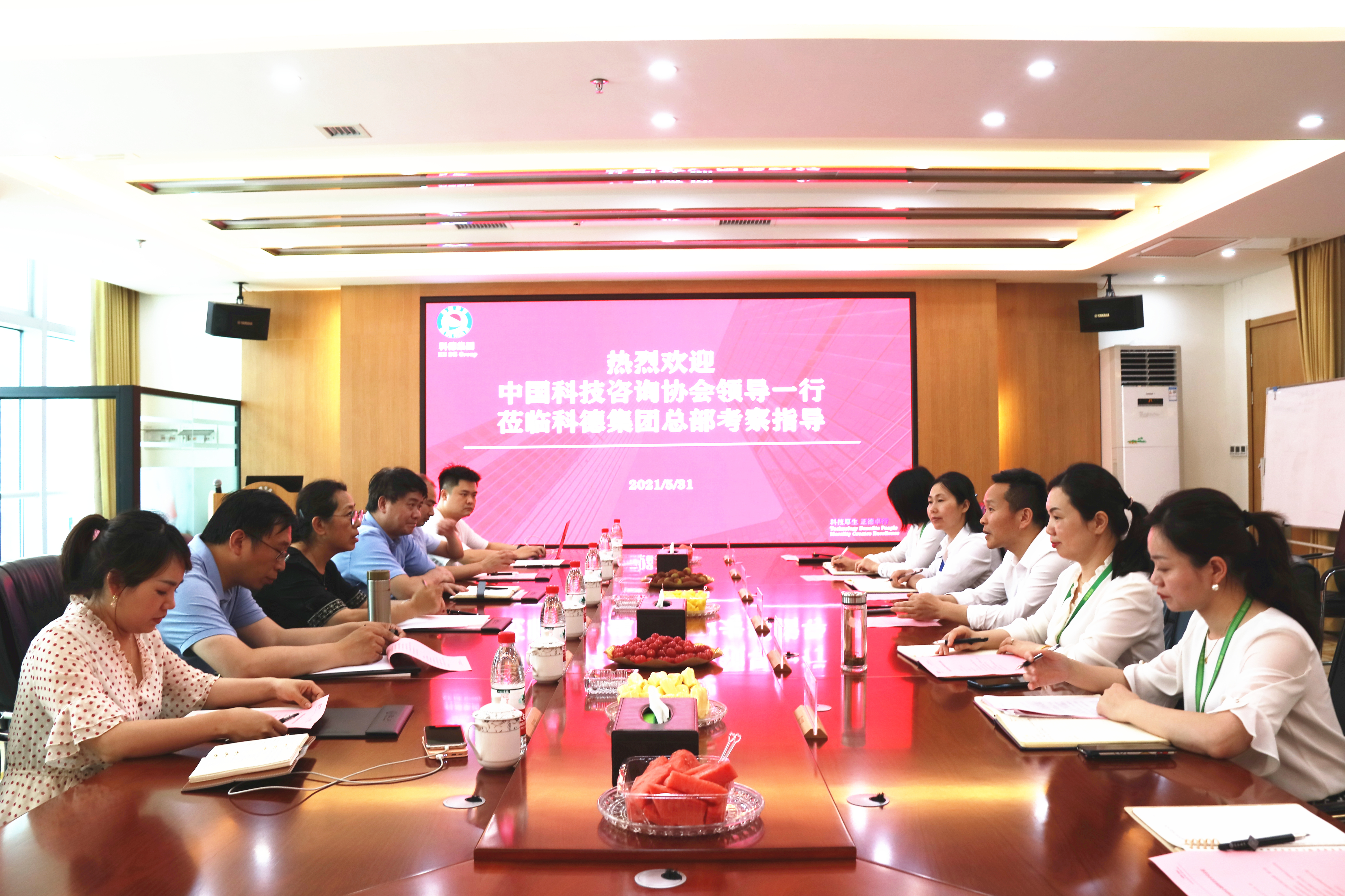 5月31日下午,中国科技咨询协会副理事长兼秘书长璐羽、副秘书长范雷一行在湖南省咨询业协会秘书长李自力的陪同下,莅临科德集团考察调研相关业务开展工作。湖南省咨询业协会副会长、科德集团董事长杨春生及集团相关部门负责人参加了会议。