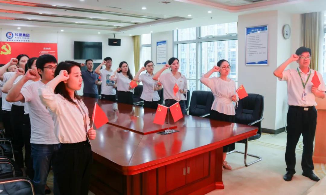 6月29日上午,科德集团党支部21名党员齐聚一堂,共同佩戴党徽,重温入党誓词。